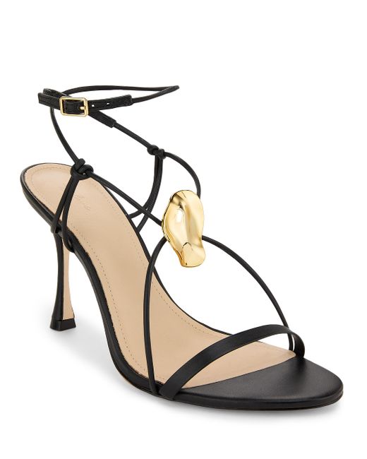 These leather sandals from 22élevé are styled with goldtone hardware at the front, an open toe, and a 90mm heel. Open toe Buckle closure Leather upper Leather lining Padded insole Leather sole Imported SIZE Stiletto heel: about 3.5" (90mm). Women's Shoes - Designer Classics > 22élevé > Saks Fifth Avenue. 22élevé. Color: Black. Size: 5.