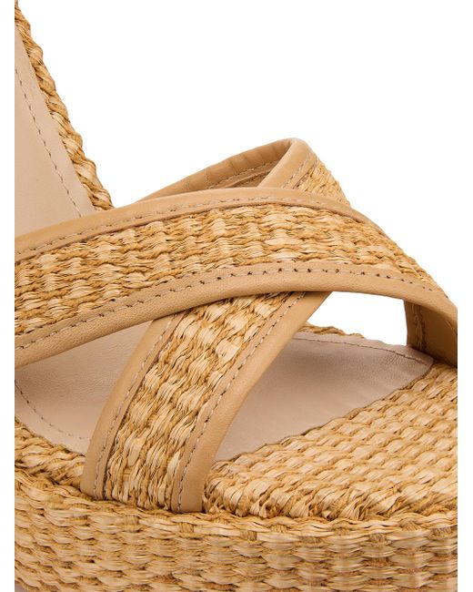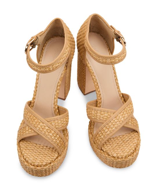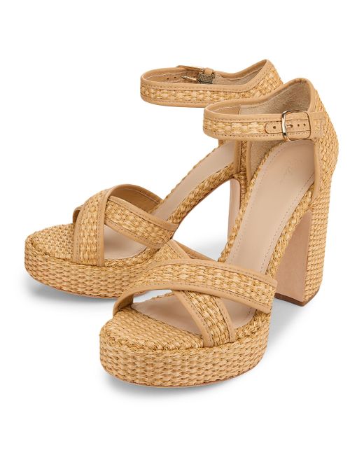 These platform sandals from 22élevé are crafted of raffia, featuring an open toe and a towering heel. Open toe Buckle closure Raffia upper Leather lining Leather sole Imported SIZE Block heel: about 4.5" (115mm) Platform heel: about 1" (25mm). Women's Shoes - Designer Classics > 22élevé > Saks Fifth Avenue. 22élevé. Color: Beige Raffia. Size: 5.