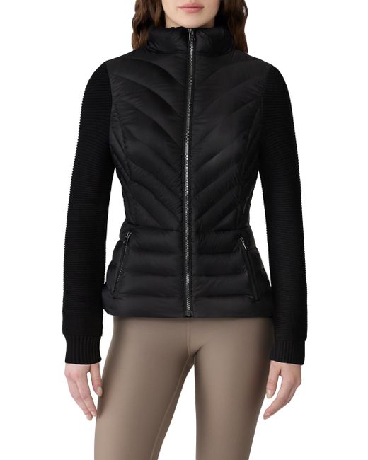 Soia & Kyo's Bexley down jacket features a funnel neck, knit sleeves, and mixed chevron and channel quilting. Funnel neck Long sleeves Side zip pockets Front zip closure 100% nylon Combo: 72% viscose/28% polyester Lining: 100% nylon Machine wash Imported SIZE & FIT About 24" from shoulder to hem Model measurements: 5'10" tall Model is wearing a US size Small. Outerwear And Swimwear - Down > Soia & Kyo > Saks Fifth Avenue. Soia & Kyo. Color: Black. Size: XS.