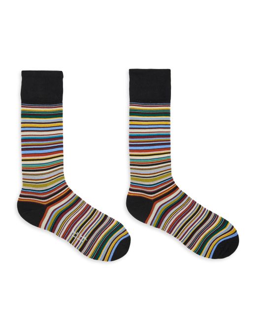 This three-pack of Gold Signature socks from Paul Smith is crafted of a stretch cotton and nylon blend, showcasing three colorful striped designs. Set of three Pair 1 and 2: 85% cotton/14% nylon/1% elastane Pair 3: 86% cotton/13% nylon/1% elastane Machine wash Made in Italy. Men Accessories - Hosiery > Paul Smith > Saks Fifth Avenue. Paul Smith.