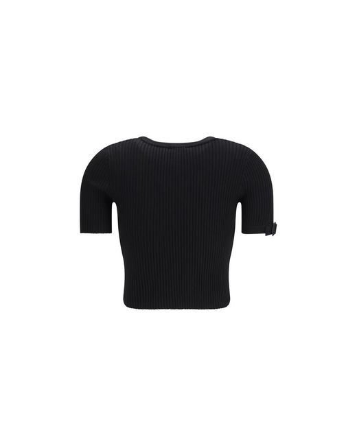 The ribbed crop Top by Courrèges combines contemporary style with iconic details. With short sleeves, a crew neck, and a decorative buckle on the sleeve, it is embellished with embroidered logo detailing for a distinctive touch. Perfect for casual-chic looks with a modern feel. Season: SS26 Fit: Regular Composition: 70% Viscose 30% Polyester