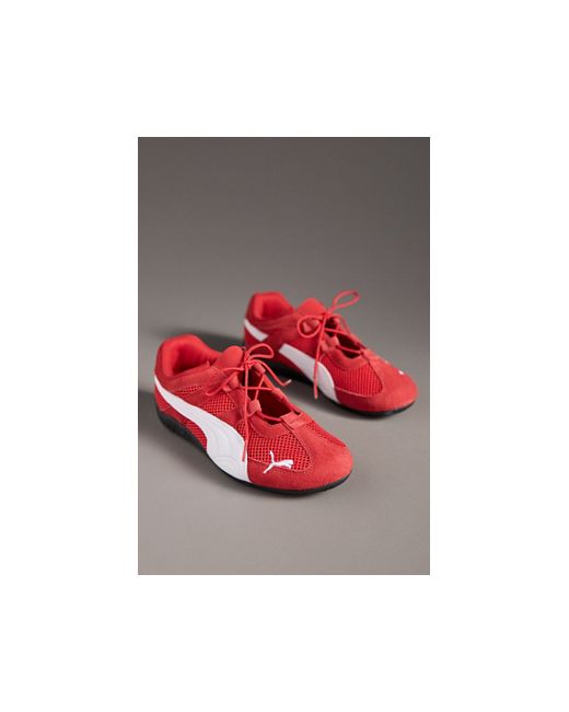 Inspired by motorsports, the sleek Speedcat sneakers are reimagined with an airy mesh upper, lace-up styling and a cushioned sole. Speedcat Go Trainers by PUMA in Red, Women's Size: Uk 4, Leather/Rubber at Anthropologie