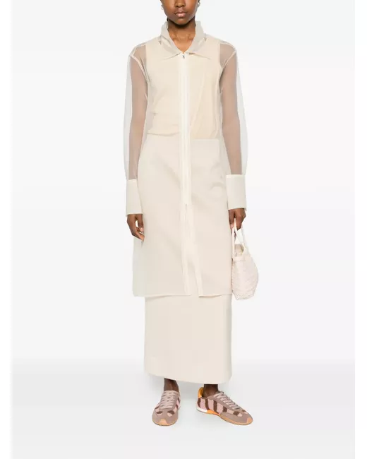 cream sheer finish point collar zip fastening long sleeves cuffed sleeves