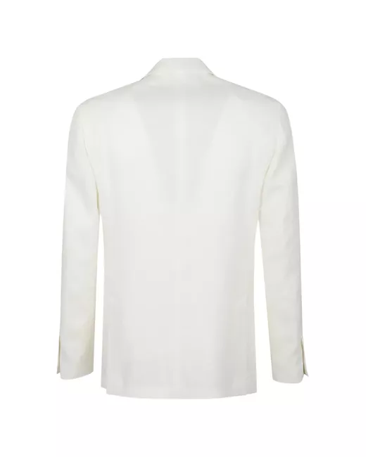 white two-button fastening lapel pin welt pocket patch pockets long sleeves