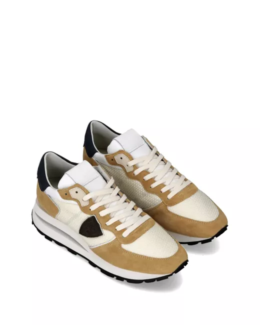 white and beige triangle patch lace-up fastening calf leather panels flat rubber sole