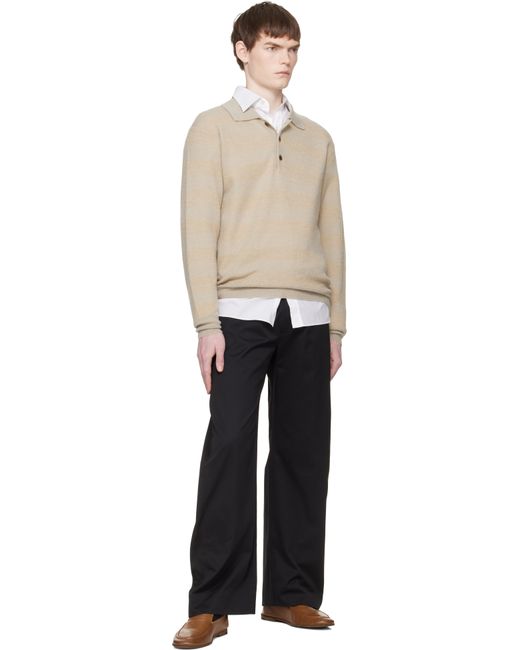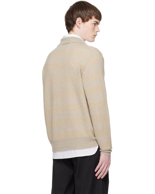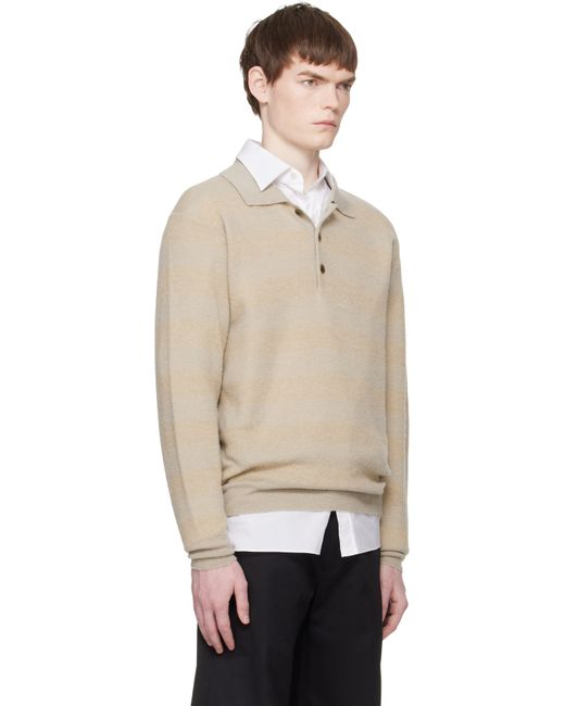 Knit wool-blend polo. · Stripes throughout · Rib-knit spread collar, hem, and cuffs · Three-button placket · Dropped shoulders Supplier color: Beige/Greige mix