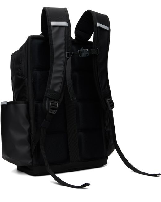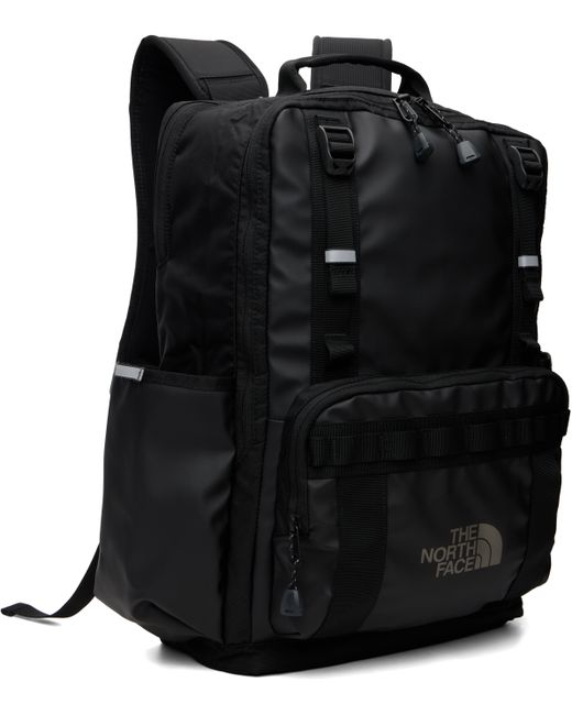 Coated 600D canvas backpack. · Water-resistant, non-PFC DWR coating · Rolled carry handle · Adjustable padded shoulder straps · Press-release sternum strap · Cinch straps at face · Zip pocket with daisy chain and bonded logo at face · Patch pocket at sides · Padded jersey panels at back face · Zip padded laptop compartment · Two-way zip closure at main compartment · Zip pocket at interior · Fleece and canvas lining · H18 x W15.5 x D4.5 / 24.6 L Supplier color: Black TNF/Asphalt