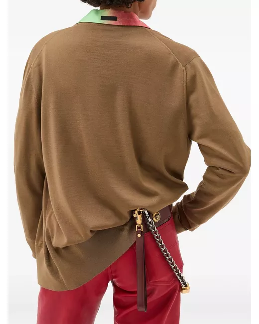 brown V-neck button fastening long sleeves ribbed hem ribbed cuffs