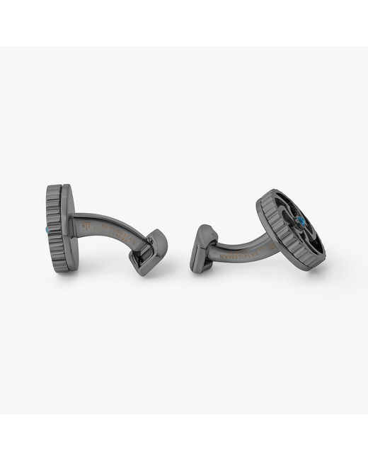 A striking fusion of ancient symbolism and modern craftsmanship. This design is available in two finishes: palladium-plated base metal layered over rich green enamel and set with a green cubic zirconia stone, or a gunmetal and palladium combination accented with deep blue enamel and a blue Swarovski crystal. At its heart, a mirrored Celtic form rotates to reveal both Triskelion and Trinity Knot patterns, symbolising unity, progress, and the eternal cycle of life.