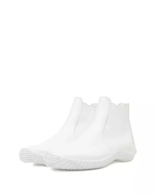 white round toe pull-on style ridged rubber sole side elasticated panels