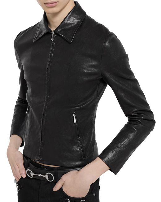 - Black washed stretch nappa leather