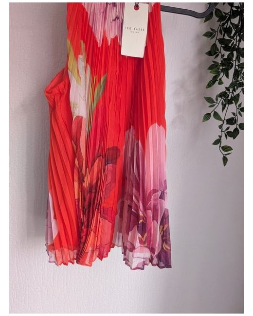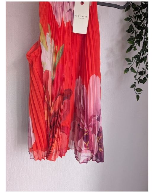 Women's Red new Orange Clovina Printed Halter Neck Sleeveless Pleated Top uk 8