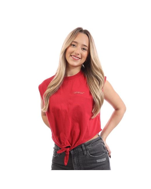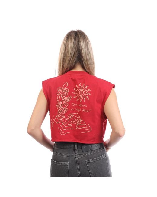 Women's White Off Arrow Crop Top