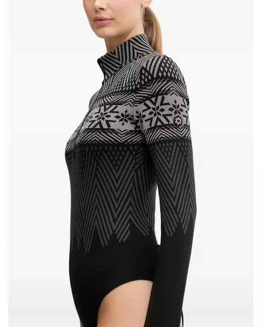 black and grey graphic pattern mock neck front zip fastening long sleeves