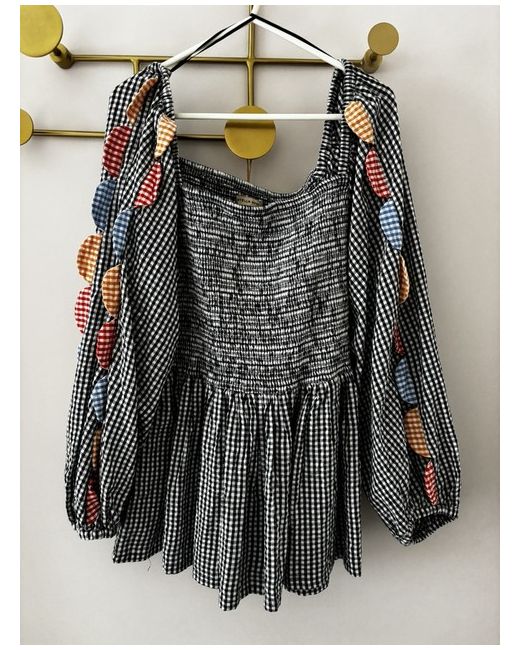 The Stella Nova Top is a stylish blouse with a square neckline and long sleeves, perfect for a size UK12/14. Made from 100% cotton in a classic black colour, this tunic-style top features a check pattern and scalloped edges, adding a touch of elegance. With a collar and the brand's signature character named Stella, this top is a versatile and chic addition to any woman's wardrobe.