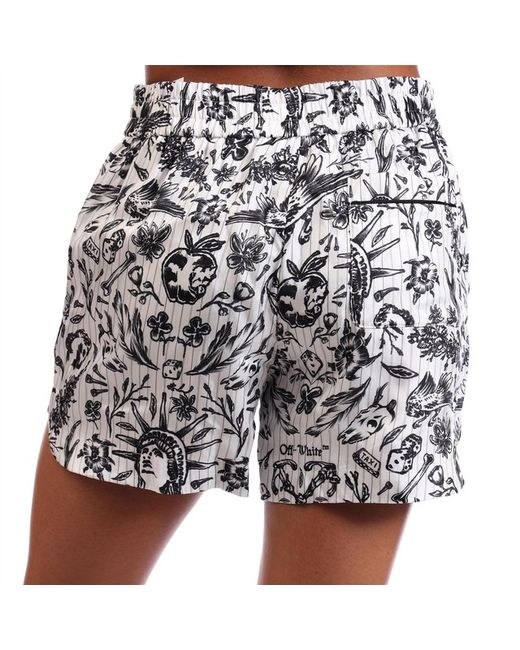 Women's White Off Tattoo Pyjama Shorts