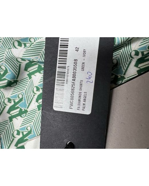 The Palm Angels Diamond Shorts in a size 42 are perfect for casual occasions. Made from 100% polyester, these green and ivory shorts feature a logo accent and a flat front design. The brand, Palm Angels, is known for its edgy and stylish designs, making these hot pants a fashionable choice for women looking to make a statement. Machine washable for easy care, these shorts are a must-have addition to any summer wardrobe.