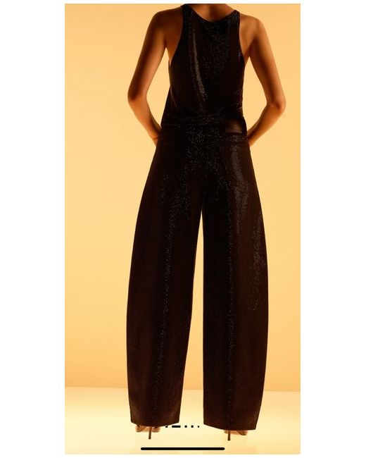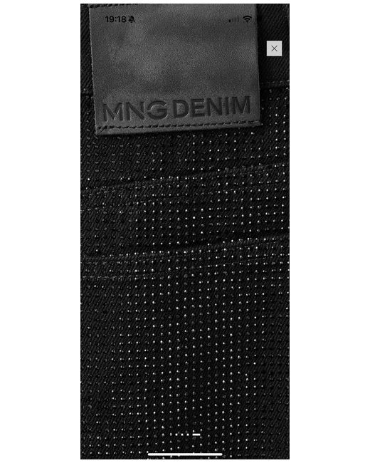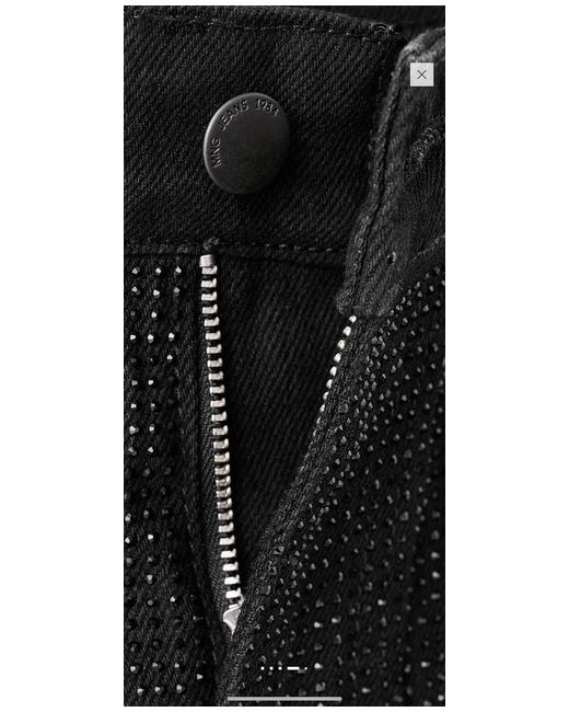 Denim-style cotton fabric. Long design. Balloon Design. Strass design. Mid-rise. Belt loops. Five pockets. Button and zip fastening. Selection Collection. This garment is part of our party and event collection, designed to elevate your looks for special occasions