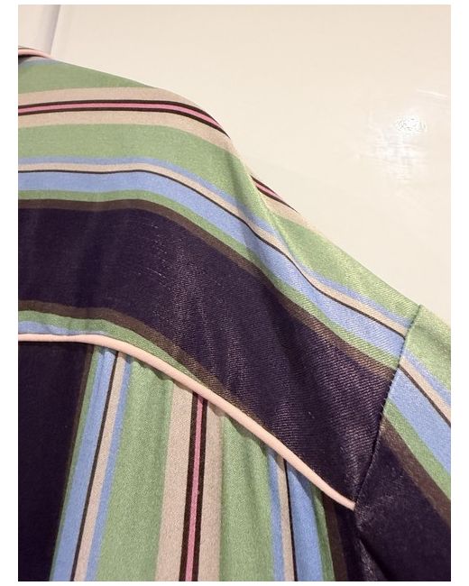 Striped design Collared neck Long sleeves Button fastening Oversized fit Contrast piping Fabric: Mid-weight, non-stretch satin Shell: 100% viscose Pls note: this piece has a few barely noticeable pulled threads (see pictures). Smoke-free household Pet-free home Size: XS I am 5‘5“ and usually wear a UK6/XS and this fits very generously due to its oversized fit. XS can easily fit XS, S and M. RRP: 389 SAVE 320🤑
