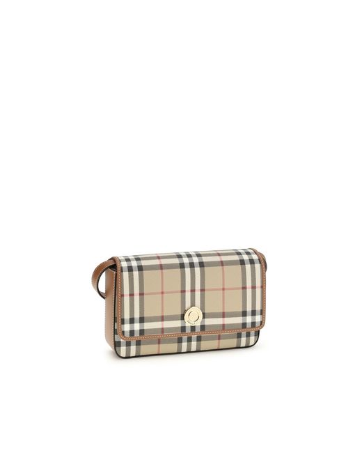 The Hampshire mini Shoulder Bag by Burberry is an elegant and versatile accessory featuring the classic check pattern. The top has a flap with a magnetic closure, adding practicality and security. The removable shoulder strap allows it to be carried as a clutch bag, making this bag ideal for sophisticated and casual looks alike. A must-have for any style collector. Season: SS26 Dimension: 20x13x4.5 Composition: 55% Thermoplastic Polyurethane 25% Polyester 20% Cotton