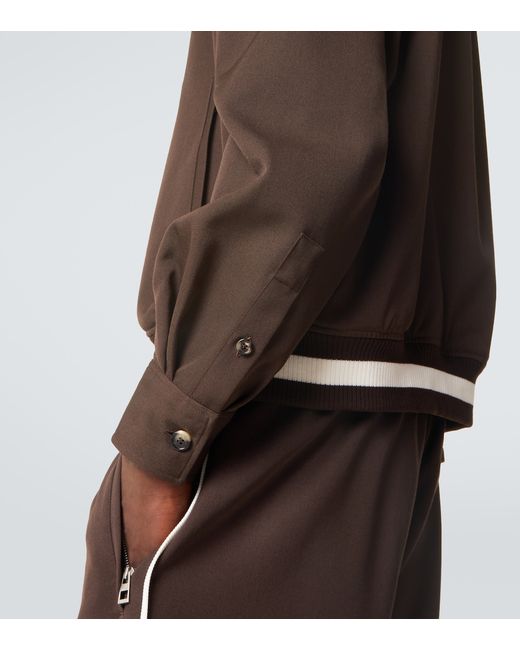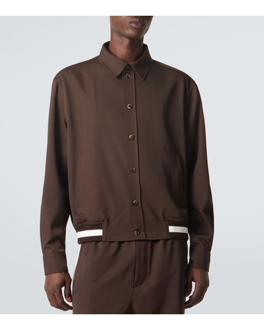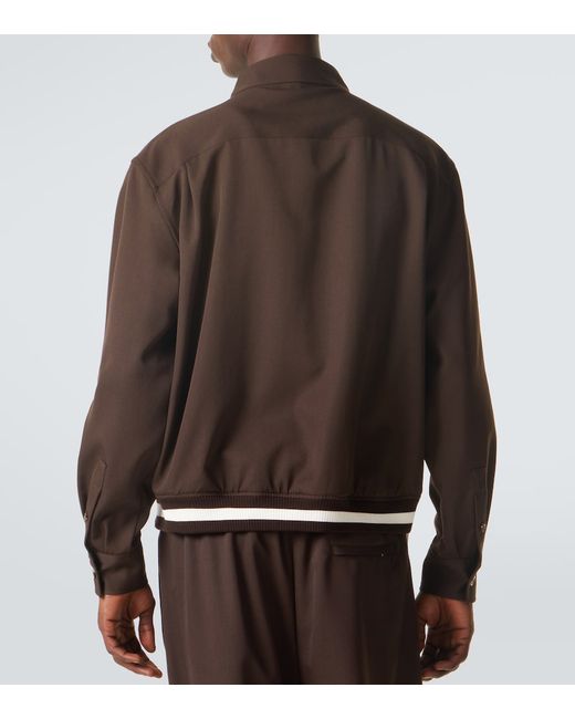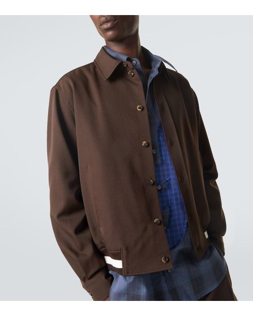 Material: 100% wool. Care instructions: dry clean. Made in Italy. Designer color name: Brown. Embroidery: 100% polyester. Trim: 87% cotton, 11% polyamide, 2% elastane. Closure: buttoned front. Wool. Pockets: welt pockets.