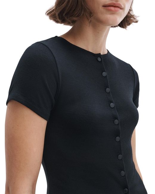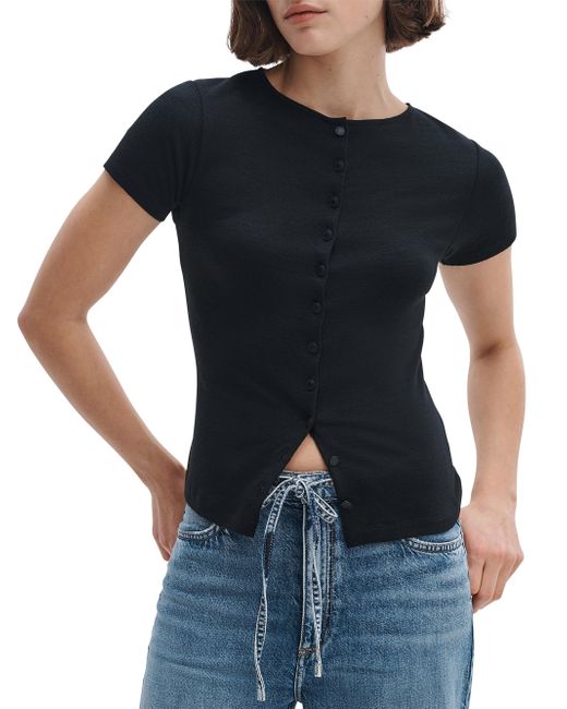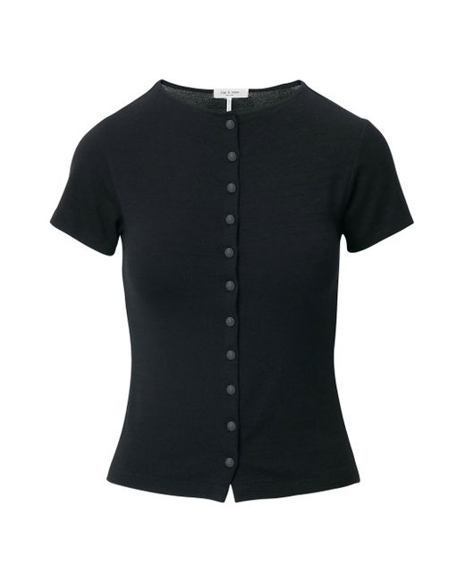 Crafted of a lightweight jersey knit, this T-shirt from rag & bone features a tonal button front and slim-fit silhouette. Crewneck Short sleeves Button-front closure 48% rayon/48% polyester/4% spandex Machine wash Imported SIZE & FIT About 21" from shoulder to hem Model measurements: 5'10" tall Model is wearing a US size Small ABOUT THE BRAND In 2002, rag & bone founder Marcus Wainwright combined his British heritage with a downtown-New York aesthetic to set the tone for the label. At the heart of the edgy-yet-laid-back brand is its focus on quality craftsmanship and attention to detail. The epitome of cool, off-duty style, it's no wonder the signature second-skin denim is favored by many. Contemporary Sportswear - Denim And Bottoms > Rag & Bone > Saks Fifth Avenue. rag & bone. Color: Black. Size: Medium.