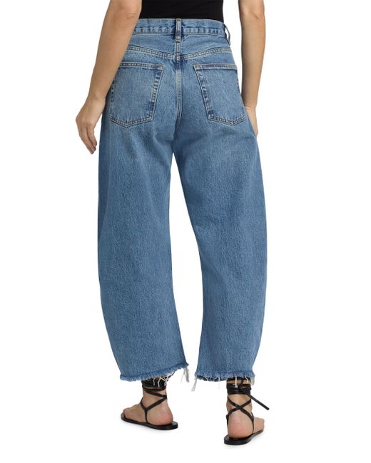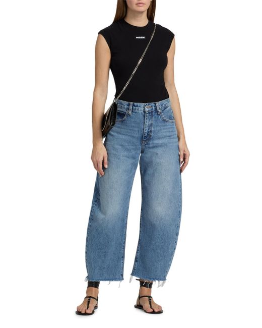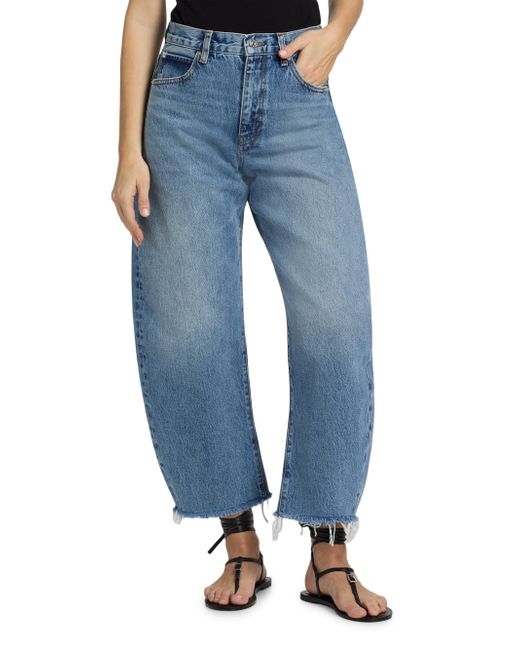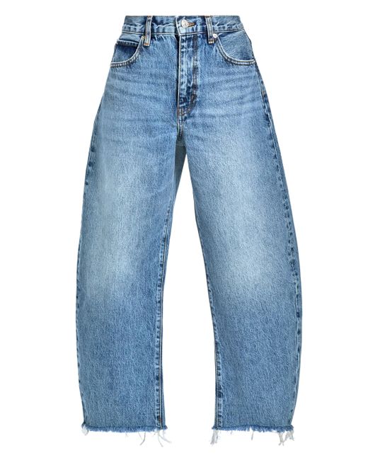 The Bubble Crop jeans from Frame are cut for a curved barrel leg and styled with a frayed raw hem. A high-rise five-pocket style completes the look. Five-pocket style Raw cut hem Zip fly, button closure 100% cotton Machine wash Imported SIZE & FIT Rise: about 12.25" Inseam: about 27" Leg opening: about 17.25" Model measurements: 5'10" tall Model is wearing a US size 4 ABOUT THE BRAND In 2012, Erik Torstensson and Jens Grede combined their California-modern point of view with a European sensibility to establish Frame. The ready-to-wear label, first known for its denim, has expanded to leather, cashmere and tailoring-all with an effortless ethos at the core. Focusing on quality fabrics and foundational dressing, the brand delivers chic everyday staples favored by Hollywood starlets and beyond. Contemporary Sportswear - Denim And Bottoms > Frame > Saks Fifth Avenue. Frame. Color: Rapture Raw Fray. Size: 23.