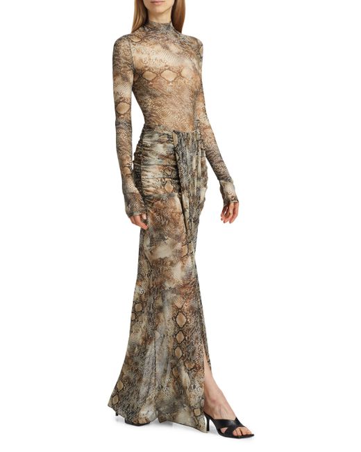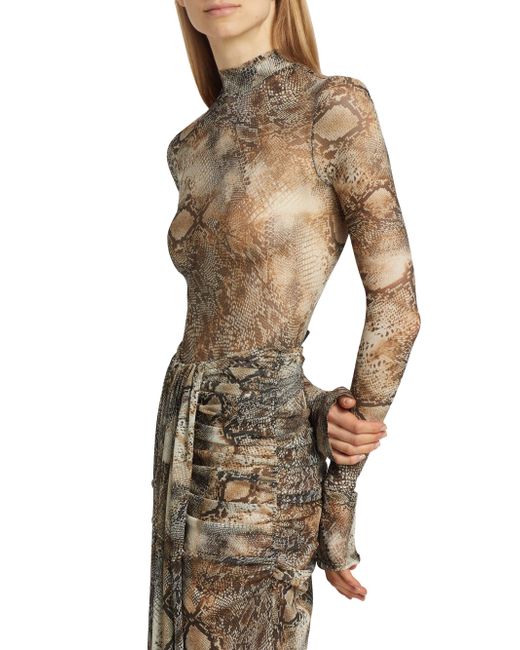 This LaPointe bodysuit highlights sheer printed mesh and a mock turtleneck silhouette. Mock turtleneck Long sleeves Back zip closure 95% polyester/ 5% elastane Dry clean Made in Italy SIZE & FIT Model measurements: 5'10" tall Model is wearing a US size Small. Designer Lifestyle - Designer Lifestyle Sport > Lapointe > Saks Fifth Avenue. LaPointe. Color: Snake Print. Size: XS.
