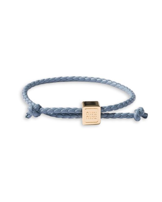 Leather bracelet. Scoobidoo workmanship Adjustable, sliding closure Logo on metal loop 100% Lamb leather Imported. Lsd Handbags - Miu Miu > Miu Miu > Saks Fifth Avenue. Miu Miu. Color: Light Blue.