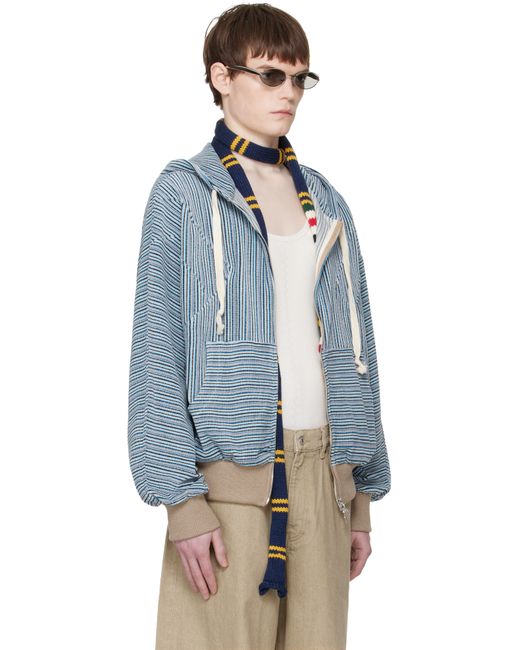 Cotton chenille hoodie. · Stripes throughout · Drawstring at hood · Two-way zip closure · Patch pockets at front · Rib-knit hem and cuffs · Dropped shoulders Supplier color: Blue/White/Black