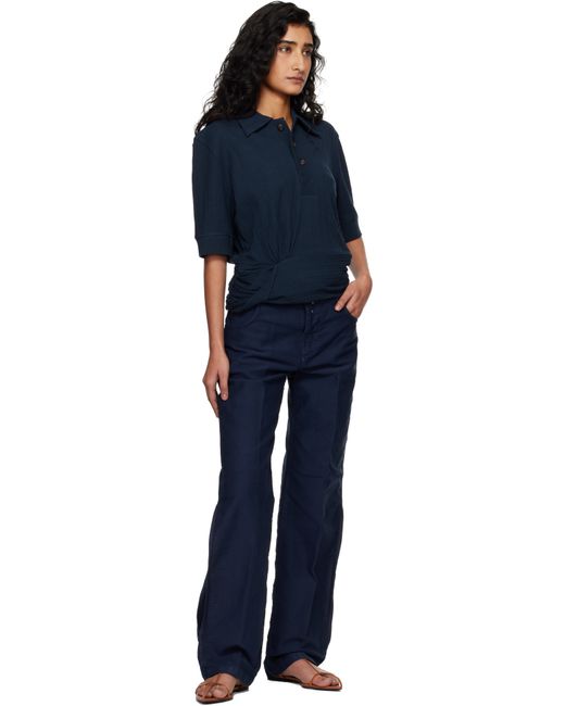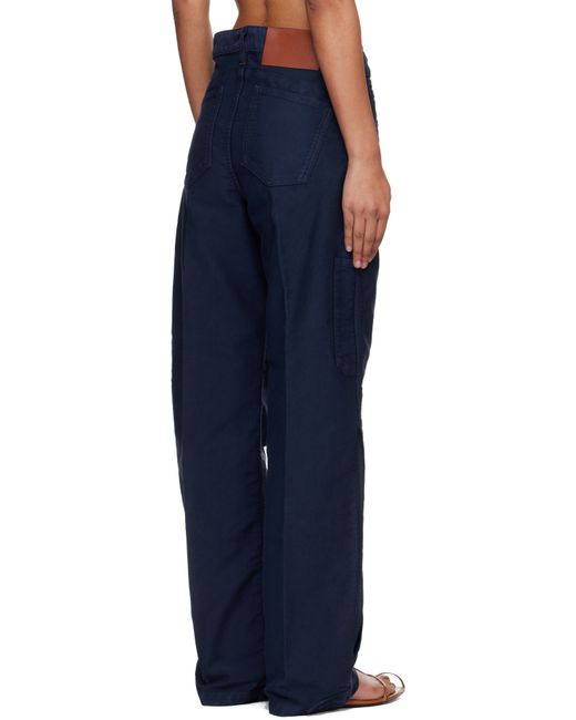 Garment-dyed cotton moleskin trousers. · Straight-leg · Mid-rise · Five-pocket styling · Rivets at zip fly · Creased legs · Vent at outseams · Leather logo patch at back waistband · Pen slot at back leg Supplier color: Navy