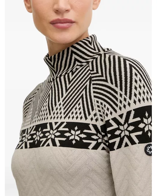 beige geometric pattern turtleneck long sleeves chevron pattern