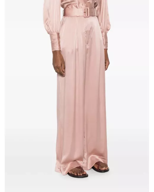 Belted Pleated Silk-satin Wide-leg Pants