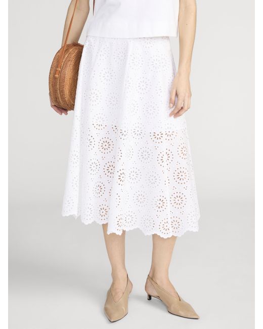 A warm-weather essential with subtle detail. The Solstice Eyelet features an airy eyelet pattern, a clean waistband, and a softly flared silhouette. Crafted from crisp cotton for an easy, feminine finish. FRAME Women's The Solstice Eyelet White Denim Size 0