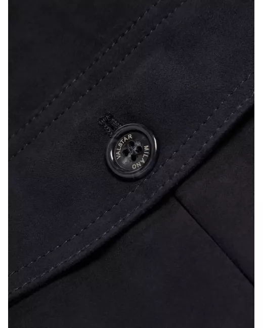 dark blue button fastening rib-knit trims flap pockets buttoned cuffs