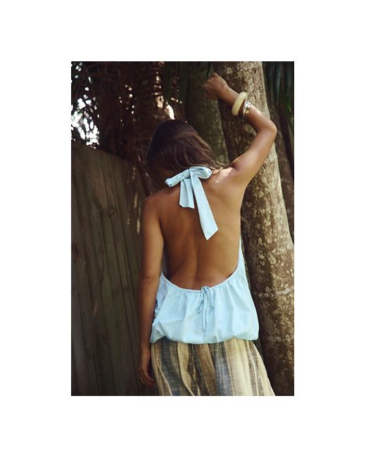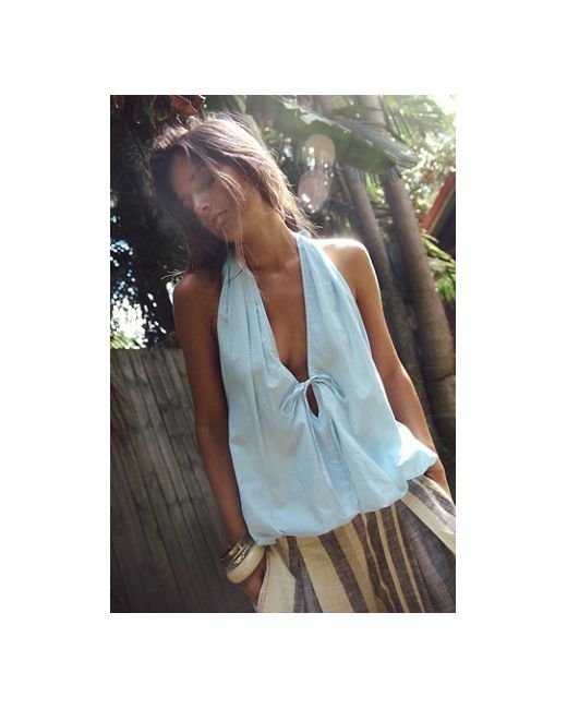 Spice up any outfit with this halter from free-est, featuring an extra-low back, plungining neckline, and bubbled hem for the perfect playful piece. * Adjustable tie at back neck * Adjustable drawcord at low back * Cotton poplin fabrication * Plunge neckline with tie detail Bubble The Fun Top by free-est at Free People in Ice Water, Size: XS
