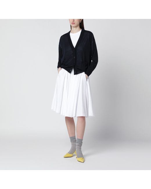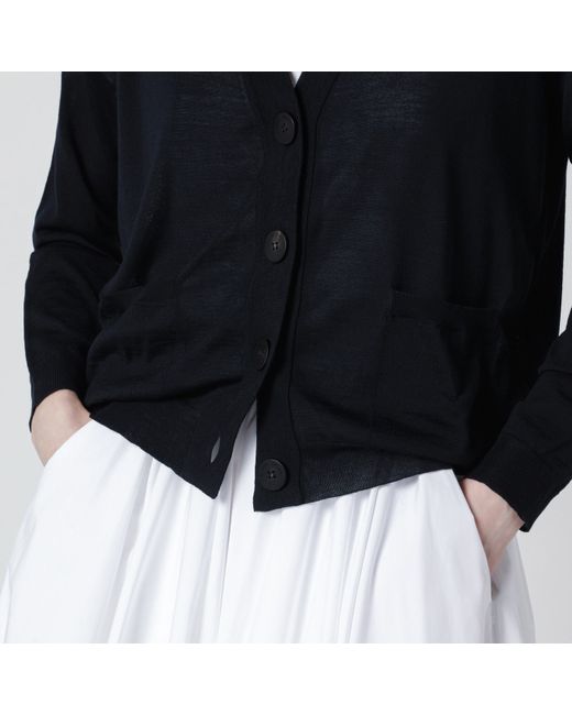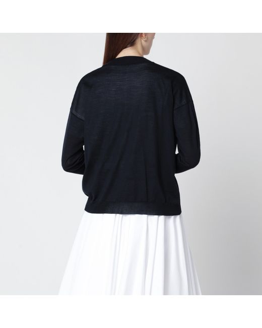 Cardigan by Roberto Collina in navy wool, featuring long sleeves with dropped shoulders, V-neck, front button closure and ribbed trims.