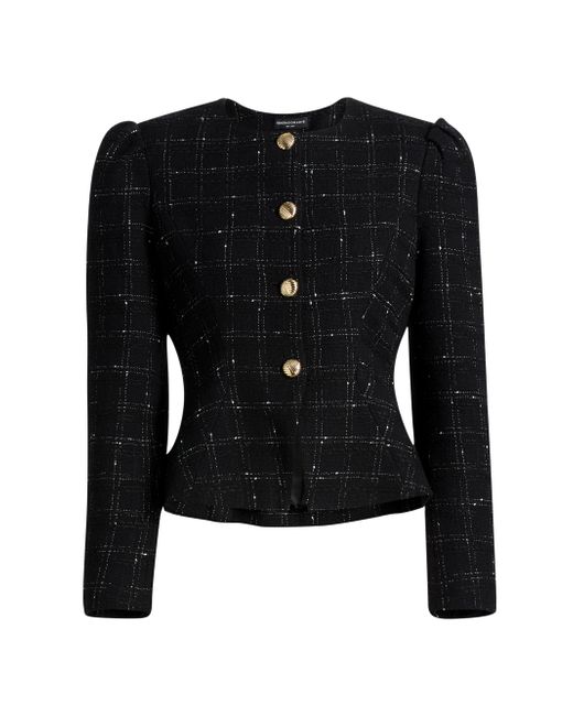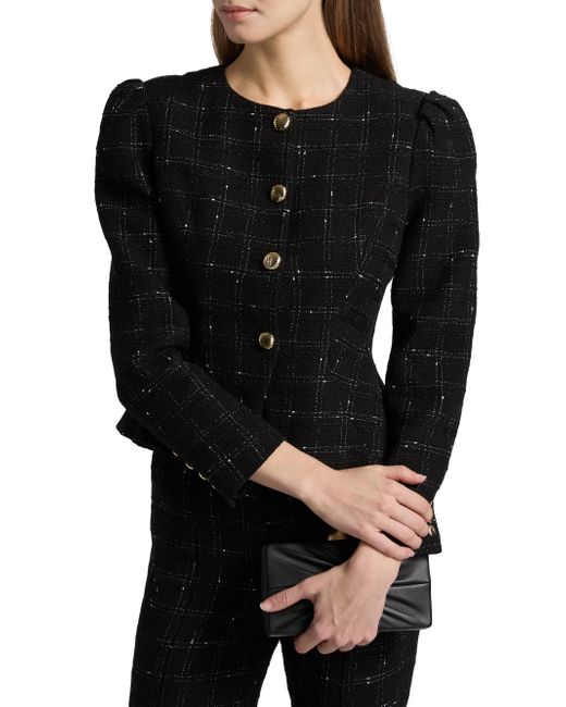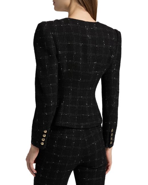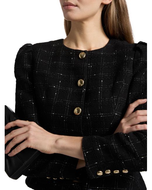 The Cynthia collarless jacket from Generation Love showcases a windowpane tweed design, puff sleeves, and a cinched slim-fit waist. Round neck Long puff sleeves Button-front closure 57% cotton/35% acrylic/6% polyester/2% viscose Dry clean Imported SIZE & FIT About 22.5" from shoulder to hem Model measurements: 5'10" tall Model is wearing a US size Small. Contemporary Sportswear - Casual Separates > Generation Love > Saks Fifth Avenue. Generation Love. Color: Black White. Size: XS.