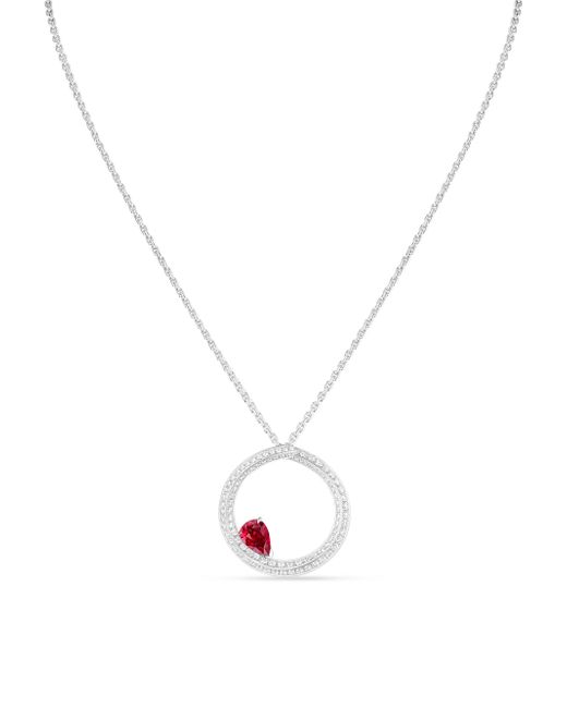 From the Brevis Collection. Handcrafted of 18K white gold, Repossi's necklace features a diamond-encrusted circle pendant accented by a floating pear-cut ruby. Diamonds, 1.50 tcw Ruby, 1.00 tcw 18K white gold Made in Italy SIZE Chain: about 17.7"L. Fine Jewelry - Fine Watches And Jewelry > Repossi > Saks Fifth Avenue. Repossi. Color: White Gold.