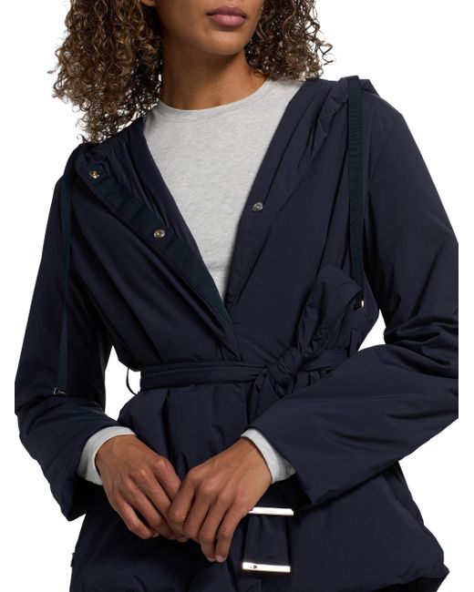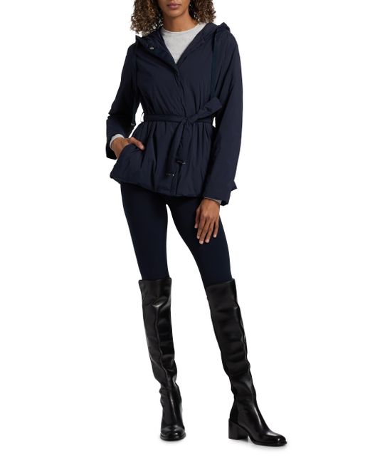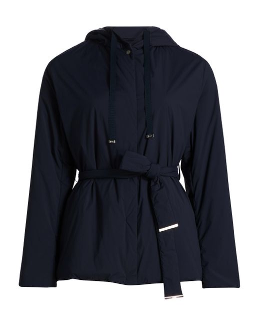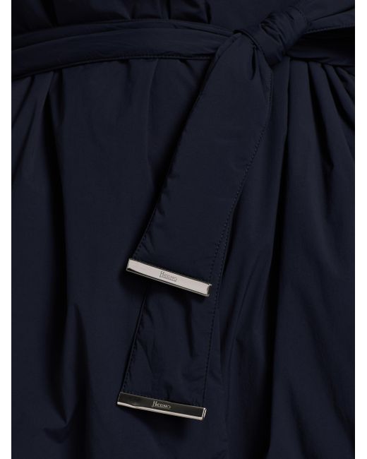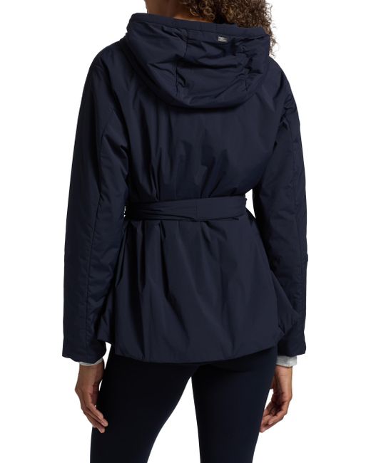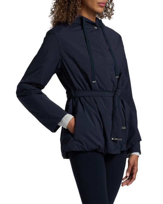 Herno's belted jacket features a drawstring hood, concealed closure, and silvertone hardware. Hood Long sleeves Belted Front zip closure 86% nylon/14% elastane Dry clean Imported SIZE & FIT Model measurements: 5'10" tall Model is wearing a US size 4. Outerwear And Swimwear - Down > Herno > Saks Fifth Avenue. Herno. Color: Navy. Size: 2.