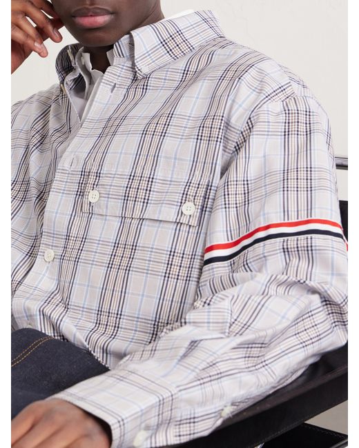 Thom Browne reworks classic shirts with distinctive brand detailing. Made in Italy, this style is cut from checked cotton-poplin and features striped grosgrain armbands. The neat button-down collar will stay in place when you put on a blazer.