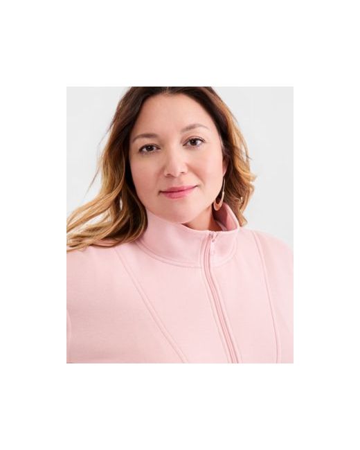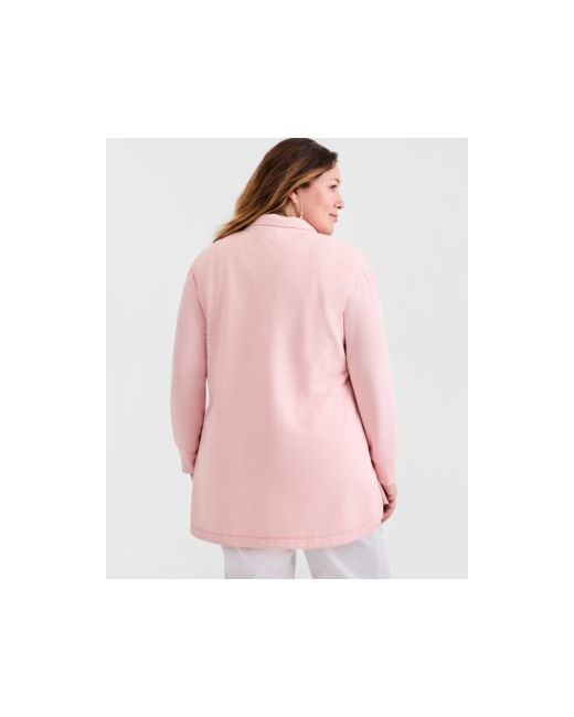 A cozy look, complete with kangaroo pockets, features a flattering longer length in this plus size quarter-zip top from Style & Co.