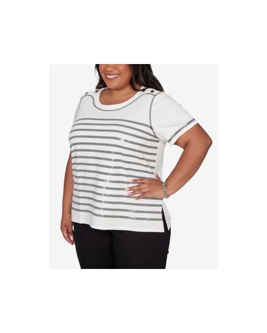 Sparkling floral accents and a delicate lace border trim elevate this crew neckline embellished tee. The straight hemline keeps the look polished while the shimmer adds a touch of celebration to your day.