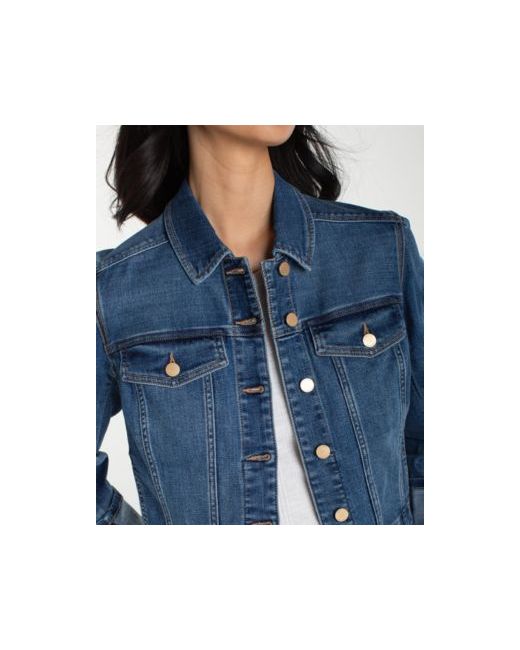 Modern denim attitude sets the tone as this Liverpool Los Angeles jacket features a collared, button-front design that delivers structured everyday style. Chest flap pockets add convenience, while bracelet-length cuffed sleeves create easy movement with a balanced silhouette.