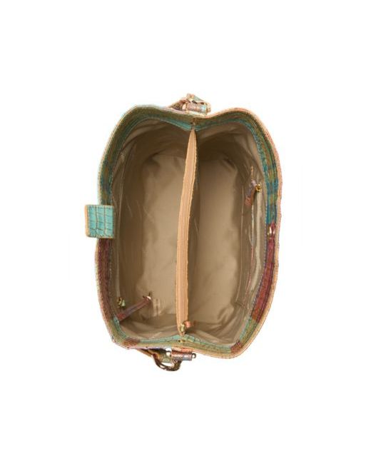 Brahmin's Celina is a trendy new twist on a classic bucket bag. This has an adjustable shoulder strap and an open top with a bridge closure for easy access to your essentials. The spacious interior has added functionality with a jewelry pocket and key clip for keeping your most precious items secure. Stylish new hardware at the sides gives this added freshness with ease.