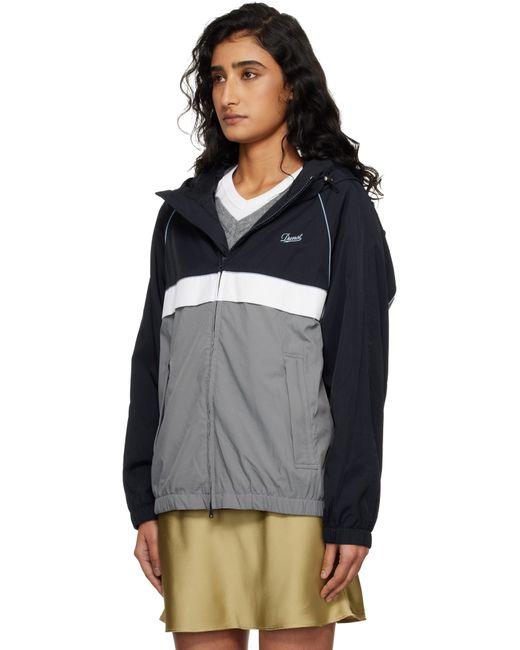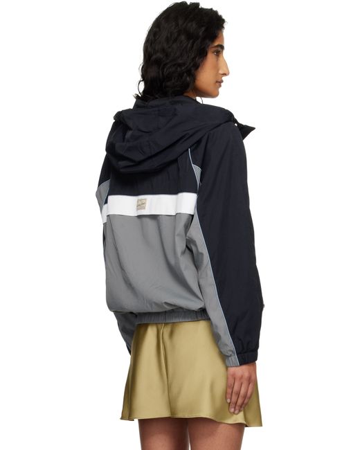 Nylon taffeta jacket. · Bungee-style drawstring at hood and hem · Two-way zip closure · Logo embroidered at chest · Storm flap at chest and back · Zip pockets at waist · Raglan sleeves · Embroidered logo and logo patch at back · Welt pocket at interior · Satin lining Supplier color: Navy