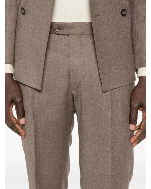 brown double-breasted button fastening flap pockets long sleeves buttoned cuffs