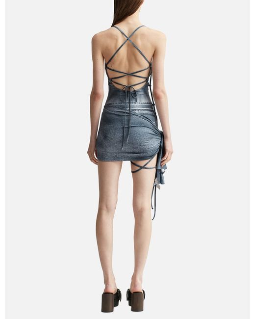 NACHEDenim Printed SwimsuitMade of polyester and spandexAllover denim printed graphicsComes with a towelMade in KoreaColor: Blue