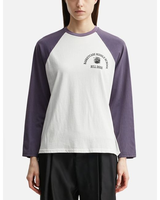 BasketcaseBULLDOG, RaglanRibbed crewneckLong sleeveRaglan sleeveGraphic print on chest and backColor: White / Purple