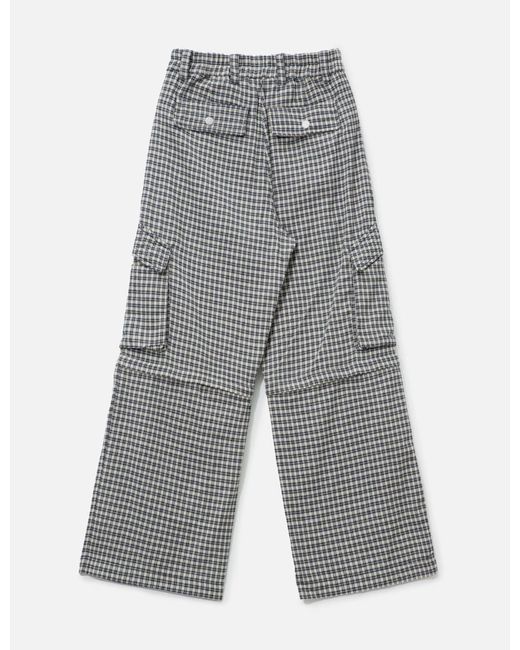 BasketcaseDOLLY, Plaid Cargos2-way cargo pantsDetachable knee panelClassic check patternWide, straight legRelaxed drapeLong lengthZip flyCroutch guesstTwo side pocketsTwo large cargo pockets with snap buttonTwo back patch pockets with snap buttonColor: Multi